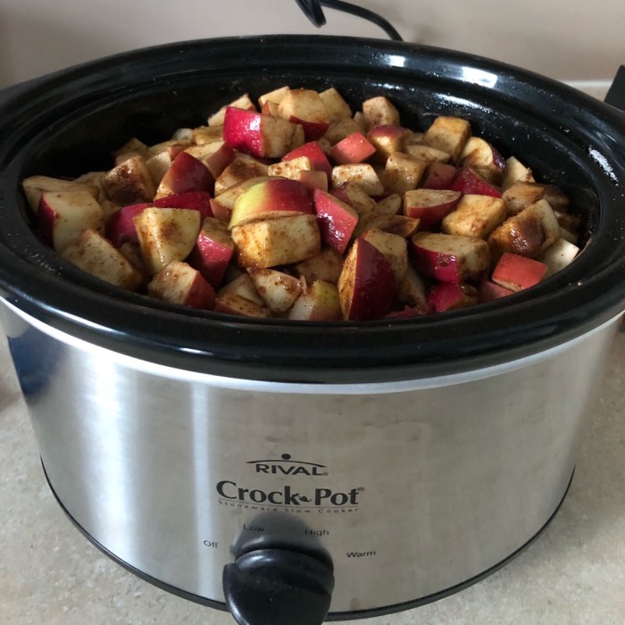 Once we followed all of Laura’s instructions with minor adjustments (1)we did not remove the skin of the apple; 2) we forgot to buy brown sugar but used coconut sugar instead, and 3) we made our own pumpkin spice since we forgot to buy that as well), our Crock-Pot not only looked glorious but we already wanted to start eating the apple chunks before they even started cooking.