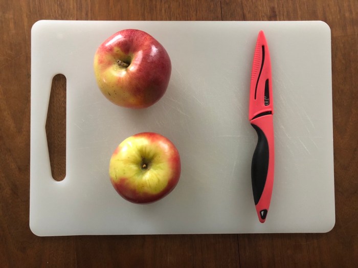 We bought our yummy 4 pounds worth of apples from Trader Joe’s. Then we started our workout process of chopping up all of our apples