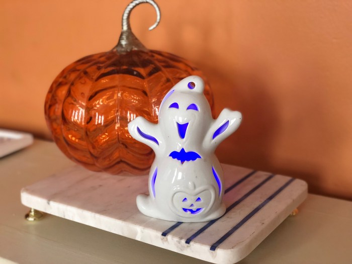We were very fortunate and were able to get these items for less than $5 each. For holiday season decor, we highly recommend checking out your local thrift shops. They always have great decor which is where we found our ghost. Other places we have gone to were TJMaxx, home goods, and Christmas tree shop.