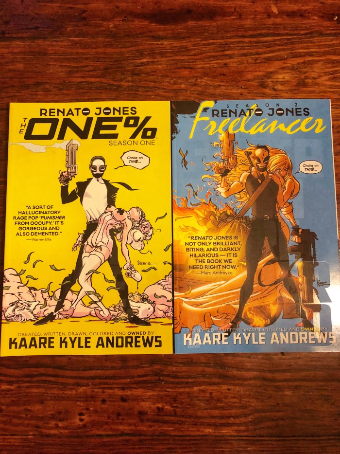 For the record, we’re not talking about people that are self-made millionaires (for those readers that are all libertarian and crap), but generational wealth that puts one in the global 1%. Jones enemies are the recipients of inherited wealth, American versions of the Hapsburg dynasty that are so twisted by avarice, inbreeding and rampant capitalism that they only know how to use their wealth to cause pain. Renato Jones treats them and their money like a cancer, and excises them with a pistol with a knife strapped to it. As the wealth gap in America increases, as the cartoonishly rich grow more cartoonishly evil, this comic reads less as satire and more as prophecy.