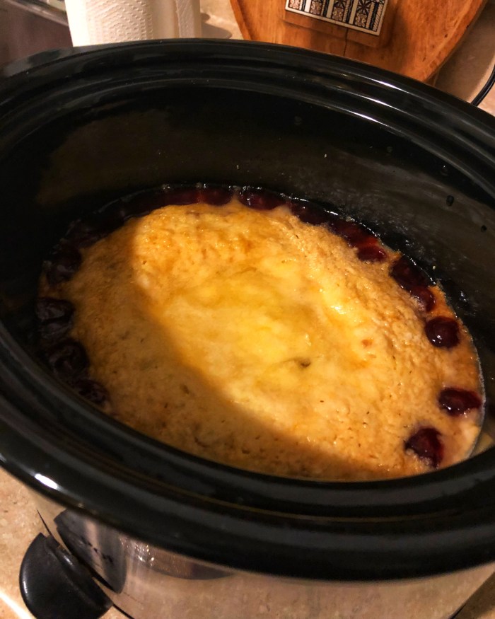 Today we will be using one essential kitchen tool, the crock pot! We had a couple of cans of cherry pie filling and found this simple cherry cobbler recipe on Tasty. Like in our prior food related Thanksgiving posts, we will provide the ingredients and directions below BUT with our own twist.