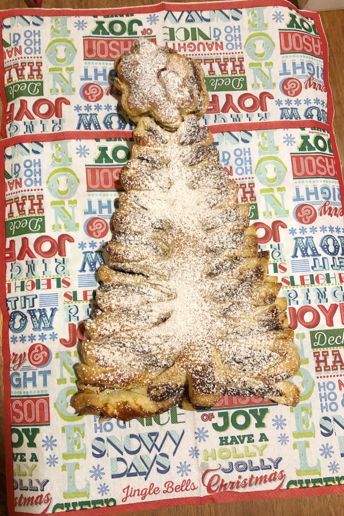This is how our tree looked like right after it came out of the oven. One thing we notices was that our puff pastry was a bit overcooked, so we recommend having it in the oven for 20 minutes.